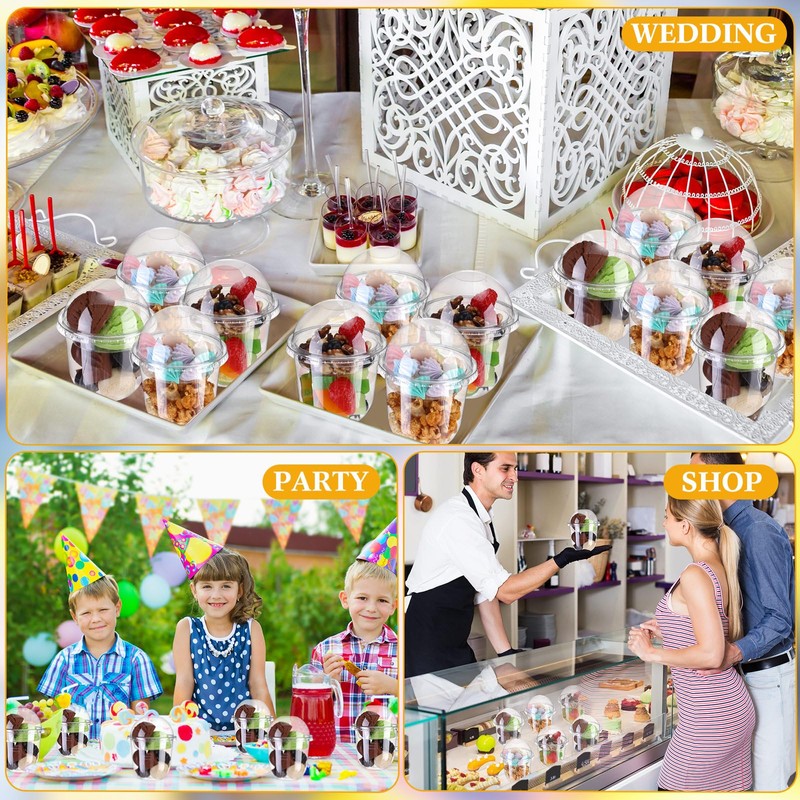 - Extensive applications: the dessert cups with lids are functional helpers for your kitchen, which makes them extensively applicable to various events, both indoors and outdoors, like birthdays, weddings, parties, catering, holiday dinners, buffets, bakeries, catered events, picnics, bake stores