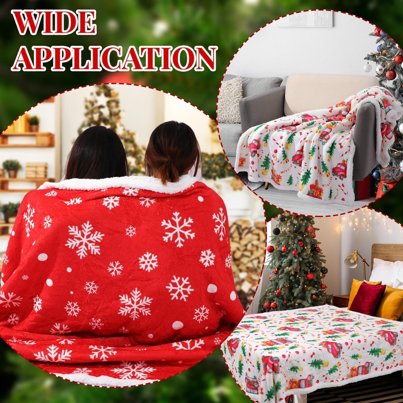 - Throw Size Blanket: our Christmas sherpa throw blankets measure about 50 x 60 inches, providing ample coverage for both personal relaxation and snuggling up with friends and family; The large size of our soft Christmas blankets are suitable for sofas, beds, and couches and keep warm and comfort