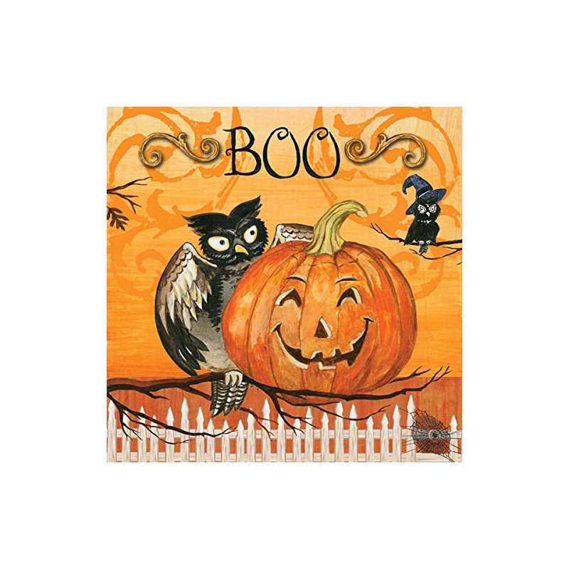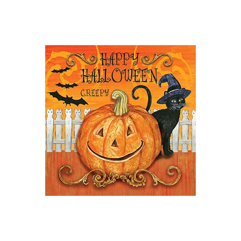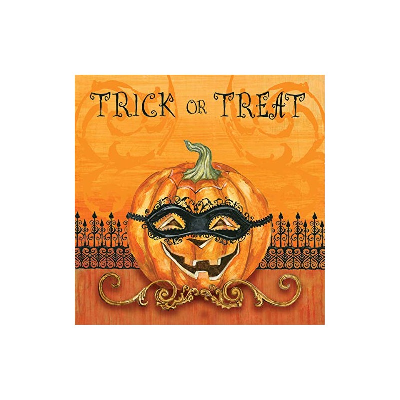 Gango Home Decor 4 Happy Halloween Jack O'Lanterns; Four 8x8 Mounted Prints, Ready to Hang! White/Orange/Black
