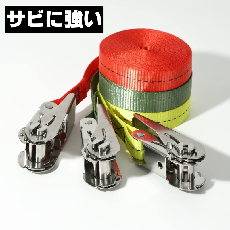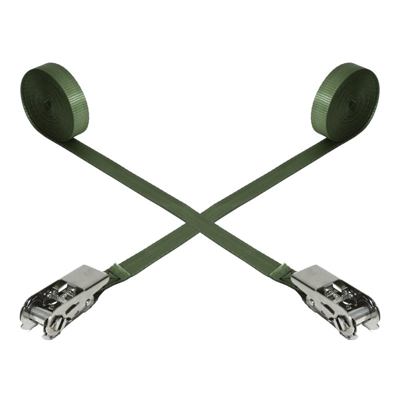 GANGWAY JAPAN Tie Down Belt, Stainless Steel 304, Lashing Belt, Ratchet Strap Belt, 1.0 x 2.4 ft (25 mm x 6 m), Endless Army Green, Set of 2