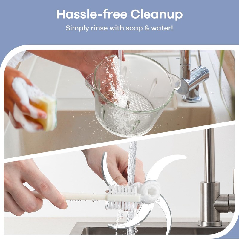 Ganiza Food Processor, 2-Speed Food Chopper Meat Grinder with 8 Cup Stainless Steel & 8 Cup Glass Bowls, Upgraded Button & Smart Overheat Protection Light - Includes Clean Brush, 2 Sets of Blades
