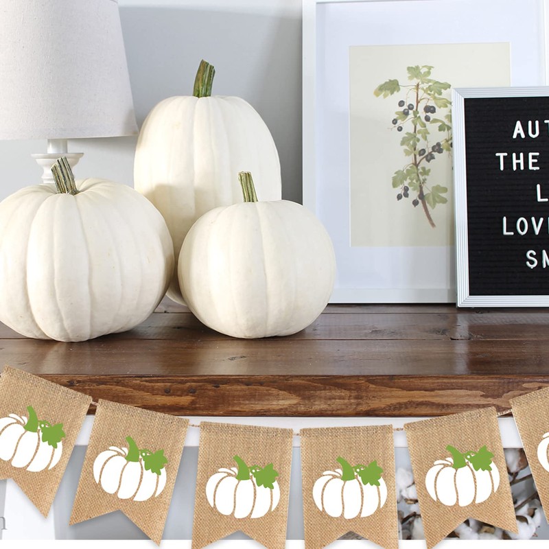 - The white pumpkin fall banner is made of sturdy burlap. It is high quality and added the perfect touch, you can reuse it year after year!