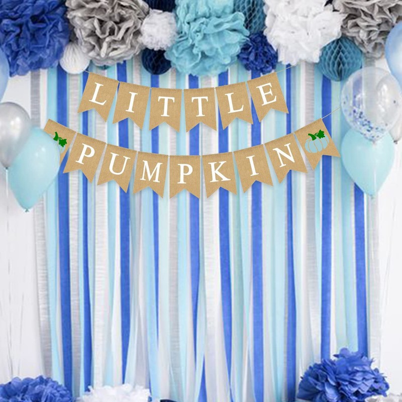 - The little pumpkin baby shower bunting is made of sturdy burlap. This is the perfect garland for decorating your baby shower or birthday.
