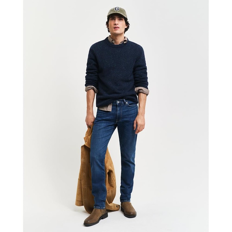GANT Men's Neps Wool C-Neck Pullover, Evening Blue
