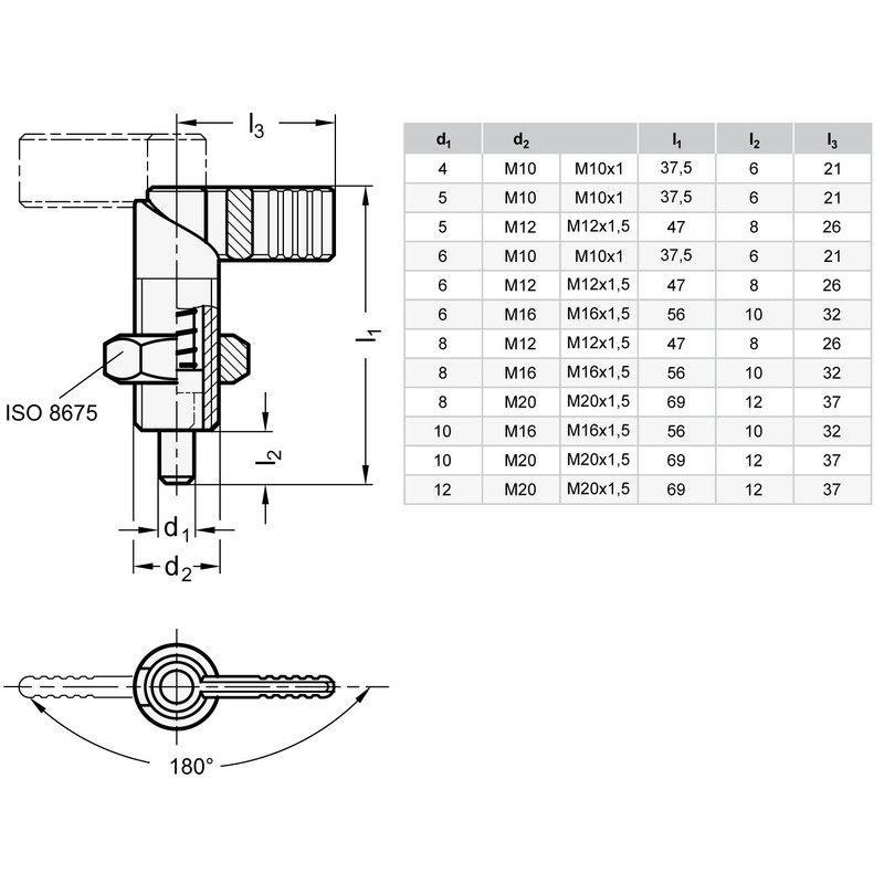 - Bolt diameter d1: 6 mm; thread d2: M16; total length l1: 56 mm; bolt length l2: 10 mm; belt length l3: 32 mm; spring pressure in N: 11 (beginning) - 29 (end)