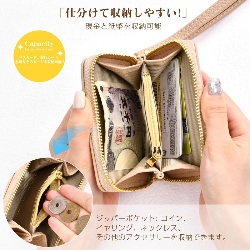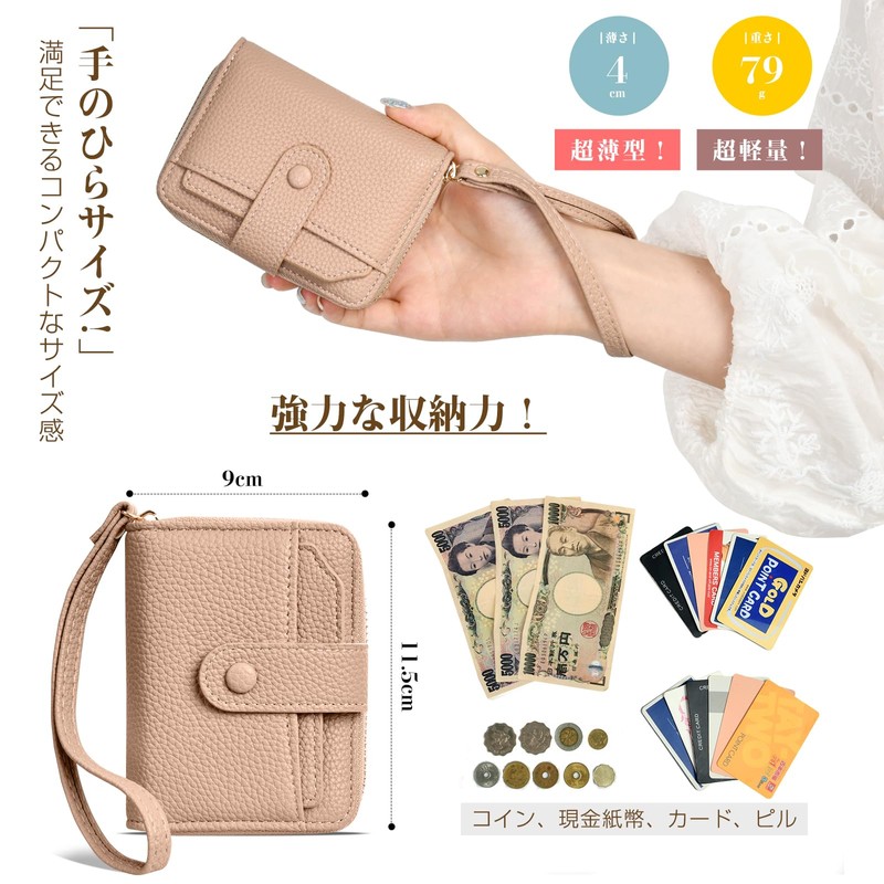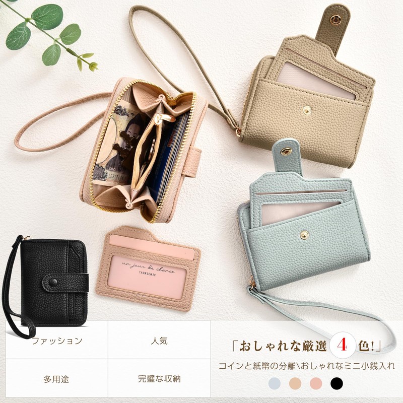 Ganve Card Case with Coin Purse with Short Hand Strap, Stylish, Small, Mini Wallet, Women's, Compact, Portable, Travel Wallet, Large Capacity, Synthetic Leather, Wallet, Multifunctional, Commuter