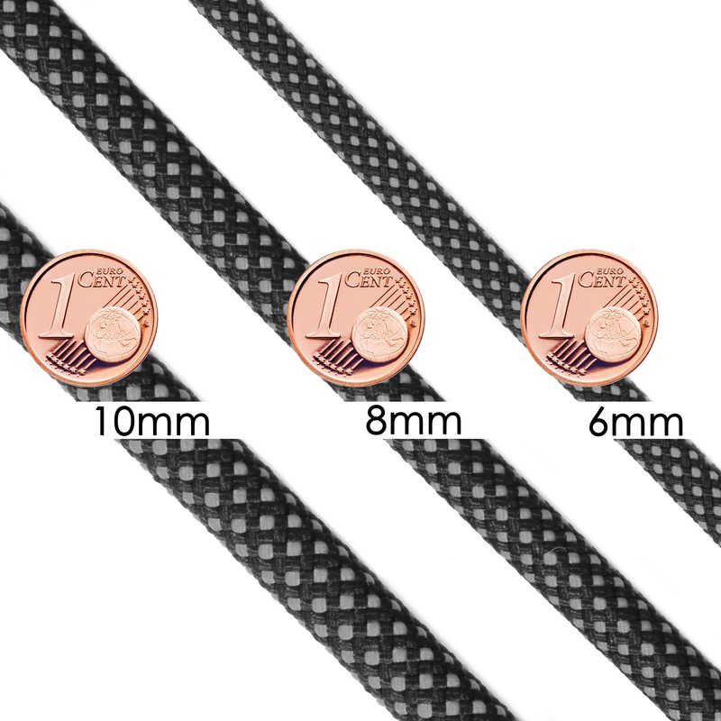 - Data: material thickness: 8 mm/10 mm, box contents: 5 m rope in one piece, weight: 155 g (8 mm) and 205 g (10 mm)