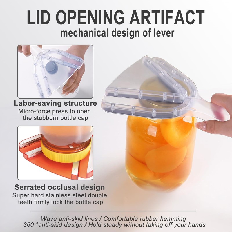 - 【Easy to Use】Features a smooth, non-slip serrated grip that won't hurt your hands. Sharp stainless steel teeth grip lids securely, reducing the force needed to open jars, while the ergonomic handle provides better leverage for easy operation