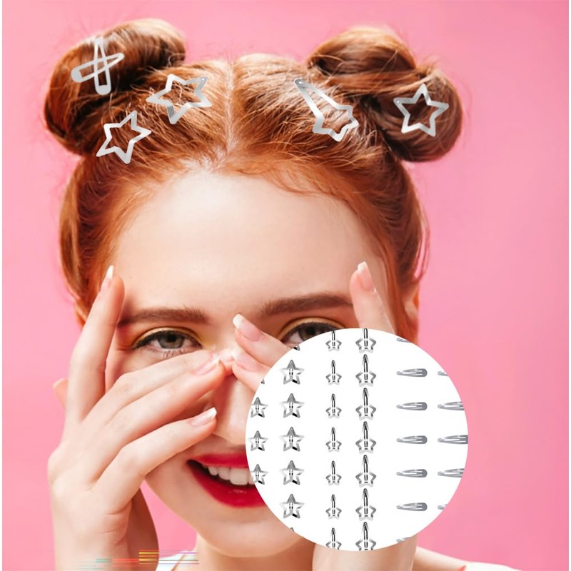 Gaodercha 42 Stücke Metall Snap Star Haarspangen No Slip Star Haarspangen Y2K Silber Stern Haarspange Hohl Out Tropfenförmiger Stern Meteor Haarnadel Kopfstücke Haarzubehör für Frauen und Mädchen