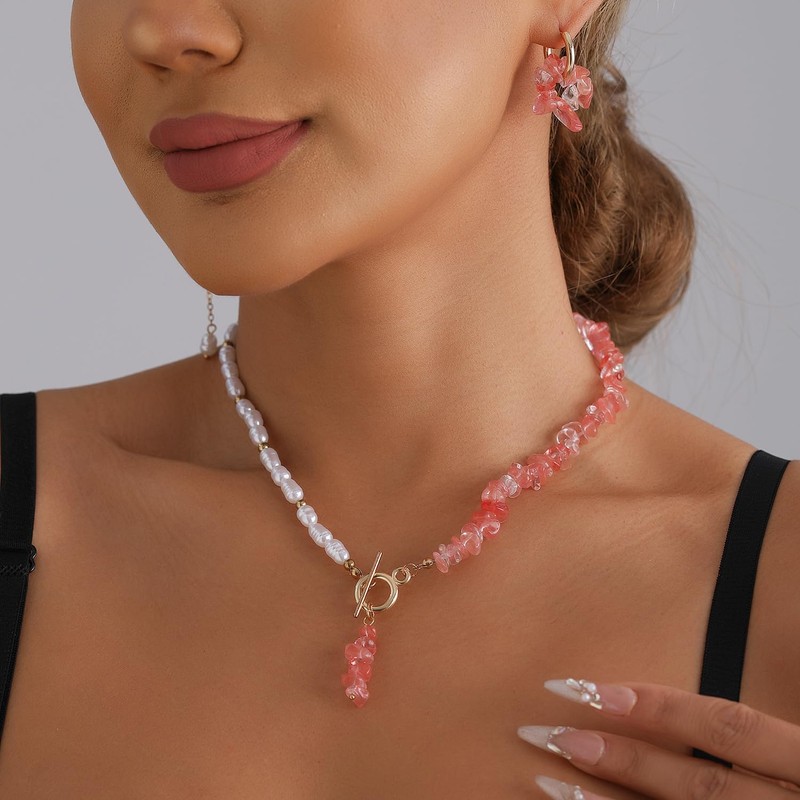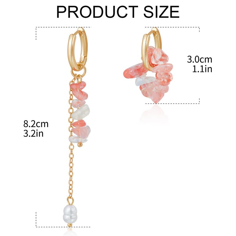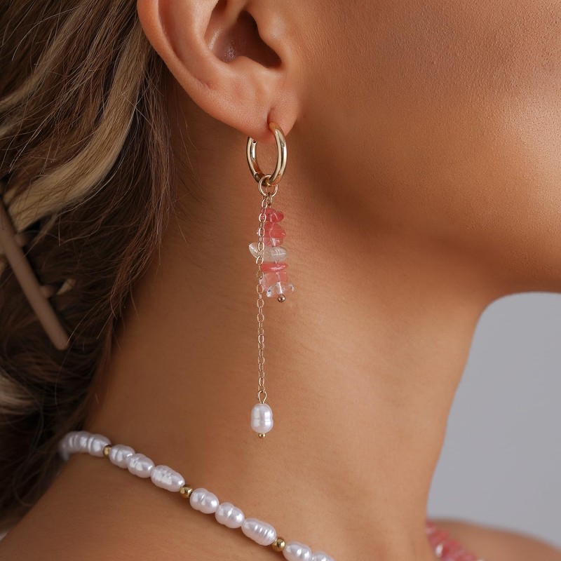 - Gaodercha Vintage Unregelmäßige Perlen Anhänger Ohrring Unregelmäßige Stein Ohrringe Naturstein Perlen Ohrringe bunte Kristall Drop Haken Ohrringe Naturstein Haken Ohrringe für Frauen