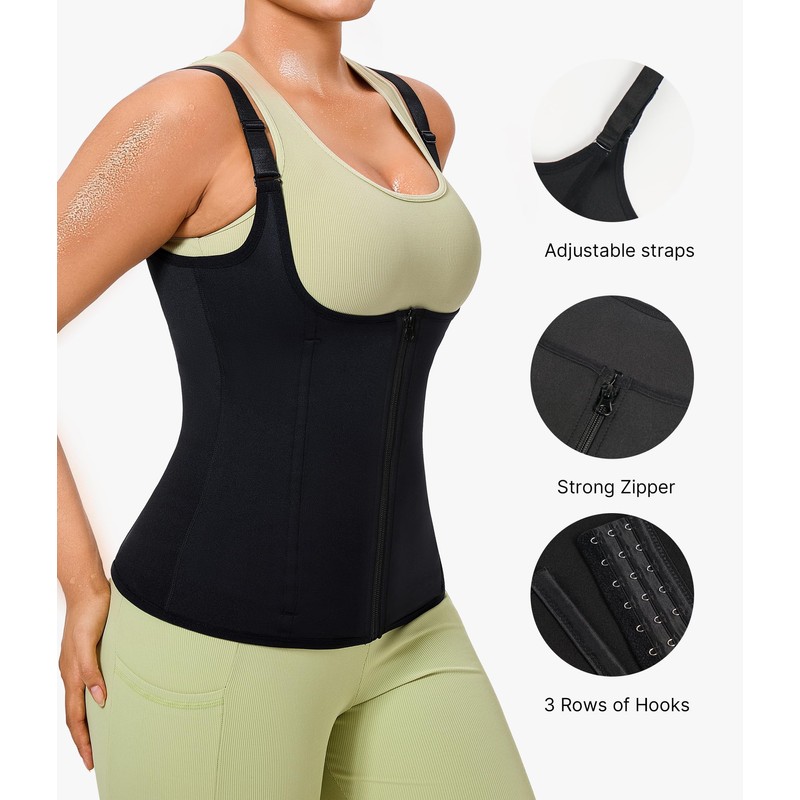 GAODI Women Waist Trainer Vest Slim Corset Workout Sweat Tank Top Zipper Compression Shirt Sauna Suit Body Shaper