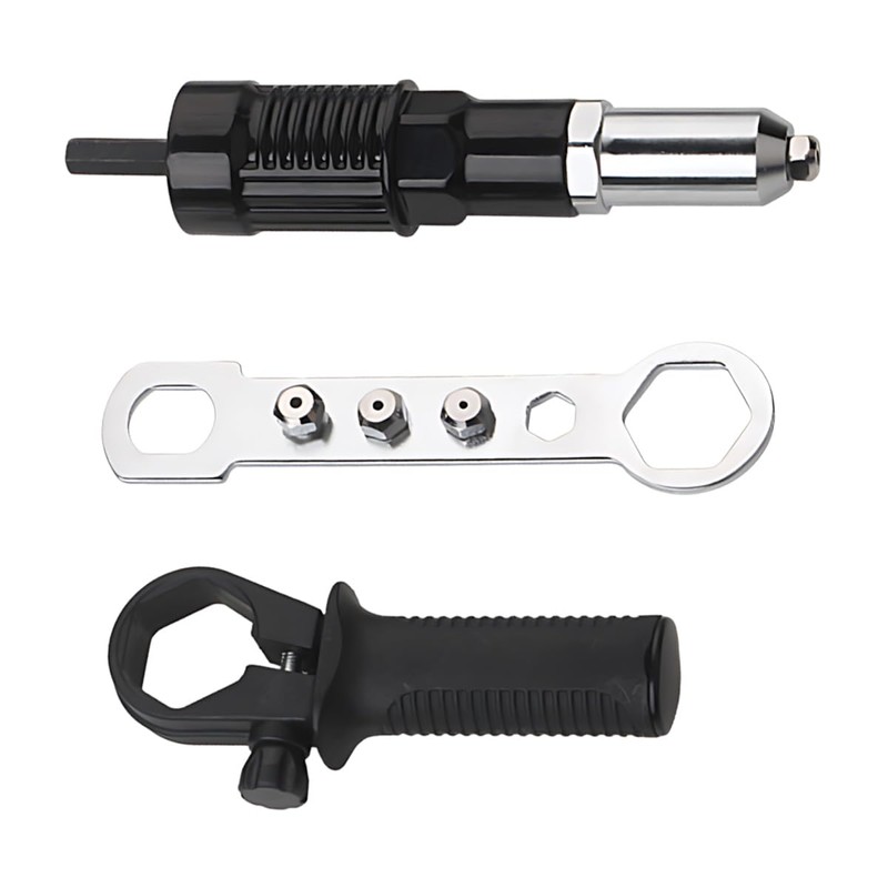 - 【High-Quality Materials】:The rivet gun adapter's head is forged from high-strength aluminum alloy, featuring excellent wear and impact resistance, it is robust and reliable, resistant to fracture, corrosion, or deformation during long-term use, the handle is made of plastic, ensuring a lightweight and comfortable grip.