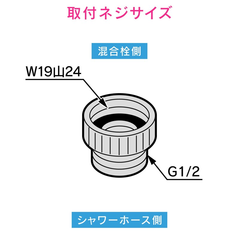 - Mounting screw: Mixing faucet side female screw (W19 thread 24) x male thread (G1/2)