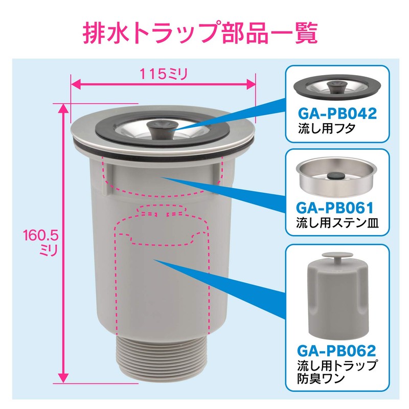 GAONA GA-PB062 Sink Trap, Deodorizing One, Gray, Approx. Width 4.7 x Depth 2.4 x Height 5.9 inches (12 x 6 x 15 cm)