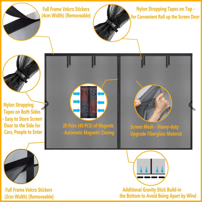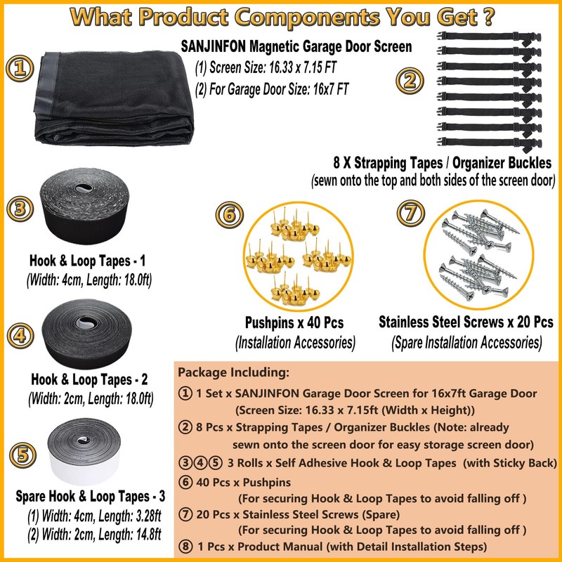 - [More Application Scenarios] - If the size (Screen Size: 16.34 x 7.15ft (195.5 inches x 85.8 inches)) is Okay, The Screen Doors with 40 Strong Magnets and Full Frame Magic Tape, can be used in mufti places, not only can be used for your garage, but also work great for barn doors, storehouse doors, warehouse doors, patio, outdoor workshop, a home gym, an arts and crafts room, garden, floor to ceiling windows of veranda, kid's playroom, gazebo etc. If you like it, buy it now!