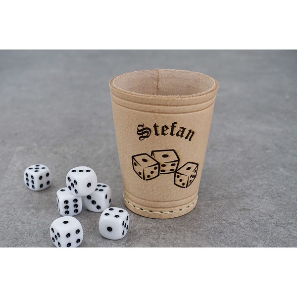- The engraving: customise your dice cup with a personalised name engraving. Material: leather is a natural product and may differ from the product image.