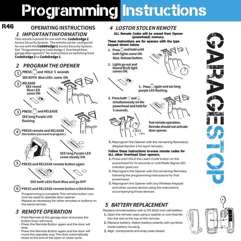 Garage Stop Garage Door Opener Remote 3-Button for O3T-BX Overhead Door Remote Opener CodeDodger and Genie IntelliCode, Auto Seek Dual Frequency 315/390Mhz (2-Pack)