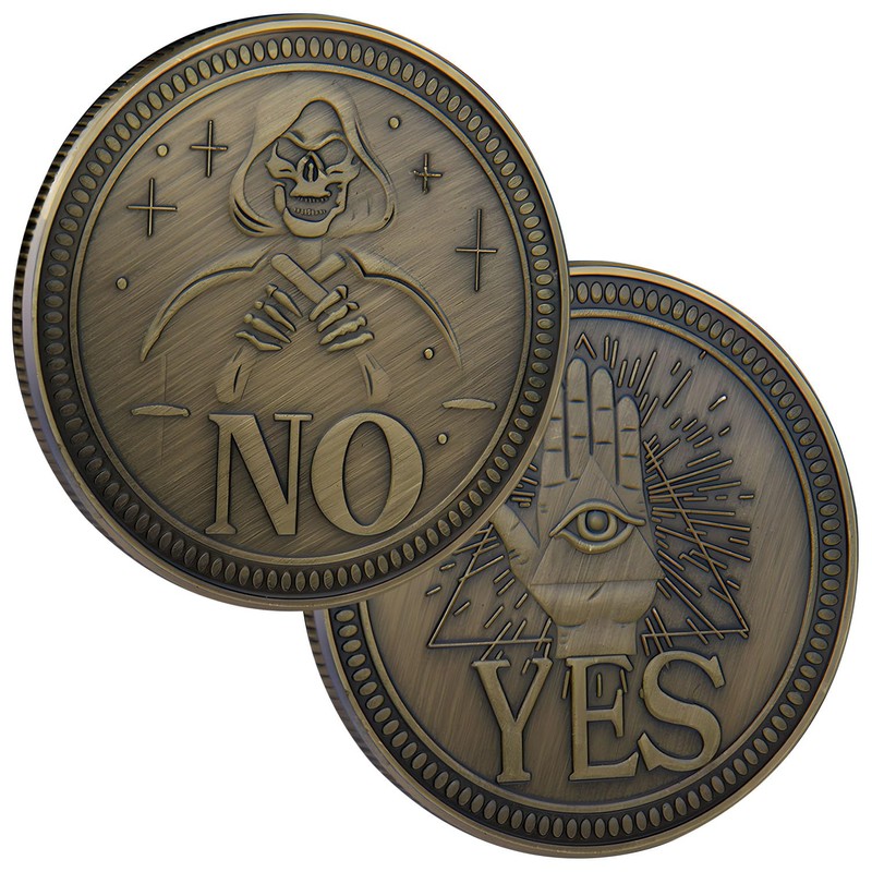 - Difficult to make difficult decisions in life or don't know what to do? Flip this coin and let fate decide! flip a coin! "Yes" means good for you, "no" means bad for you.This coin is a great addition to your divination tools blessed be.