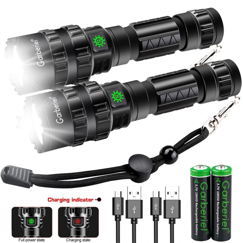 Garberiel 500000LM LED Flashlight Super Bright Rechargeable Tactical Police LED Work Light