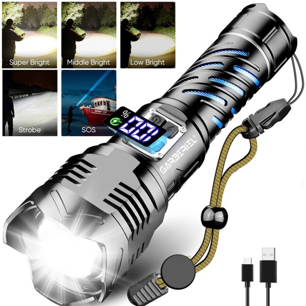 Garberiel Zoom Rechargeable LED Flashlight Tactical Super Bright 50W Torch Lamp Work Light