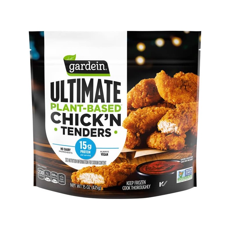 Finally, a vegan chicken alternative you can really sink your teeth into. Gardein Ultimate Plant-Based Chick'n Tenders are a mouthwatering plant-based chicken alternative. These crisp, breaded, plant-based chick'n tenders look, cook, taste and satisfy like real chicken. They're vegan and Non-GMO Project Verified, contain no dairy ingredients and provide 15 grams of protein per serving. Whether you prefer dunking them in your favorite sauce or adding them to your favorite recipes, these meatless tenders make a mouthwatering chicken substitute. Gardein: Delicious Plant-Based Protein.