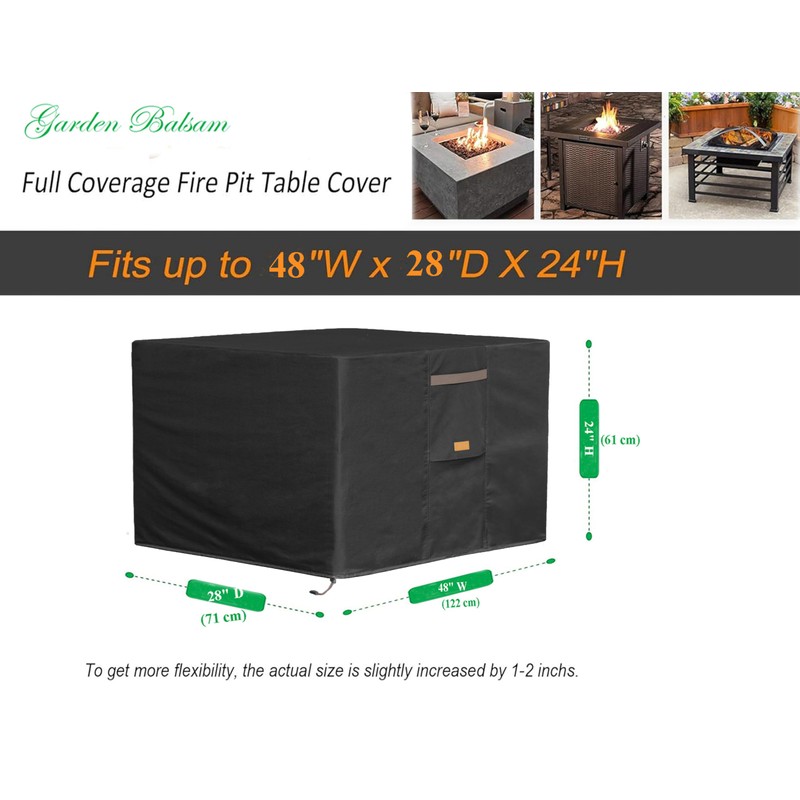Garden Balsam Fire Pit Cover Rectangular Waterproof 48" W x 28" D x 24" H Outdoor Firepit Table Cover Heavy Duty with PVC coating,Patio Fire Pit Cover Fade Resistant for Rectangle Fire Pit - Black