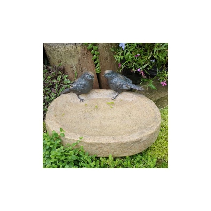 - DESIGN: Charming garden bird bath featuring two detailed bronze-effect birds perched on a natural stone-effect bowl, perfect for garden decoration