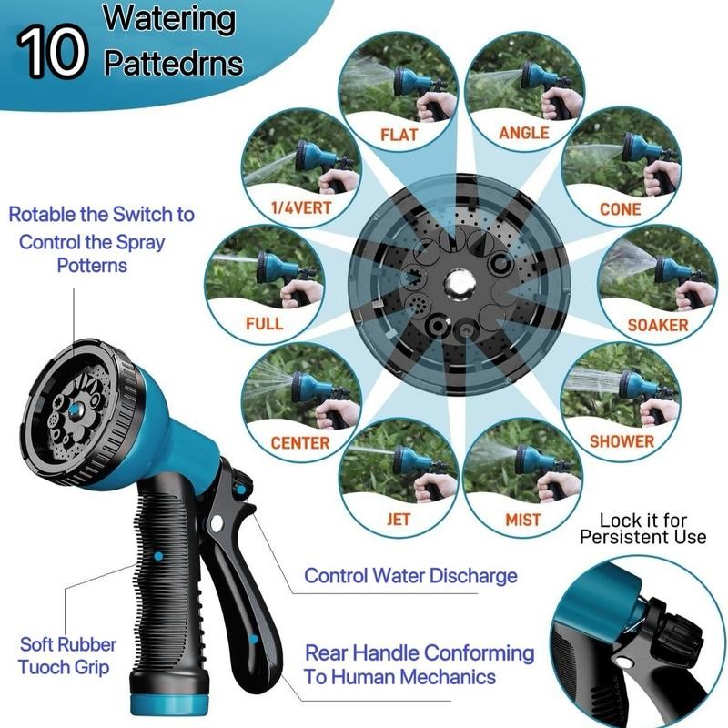 The garden hose is equipped with a 10-mode nozzle and leak-proof gaskets, allowing you to adjust the water flow to meet your needs. The nozzle is perfect for gardening, lawn care, cleaning, car washing, and more. The leak-proof gaskets ensure that the hose does not leak, making it a reliable option for all your watering needs.
