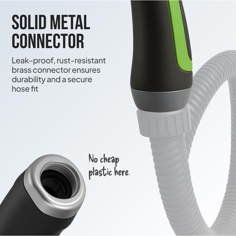 - SOLID METAL HOSE CONNECTOR – Heavy-duty brass-threaded base ensures a leak-proof and rust-resistant connection. Built to outlast cheap plastic alternatives.