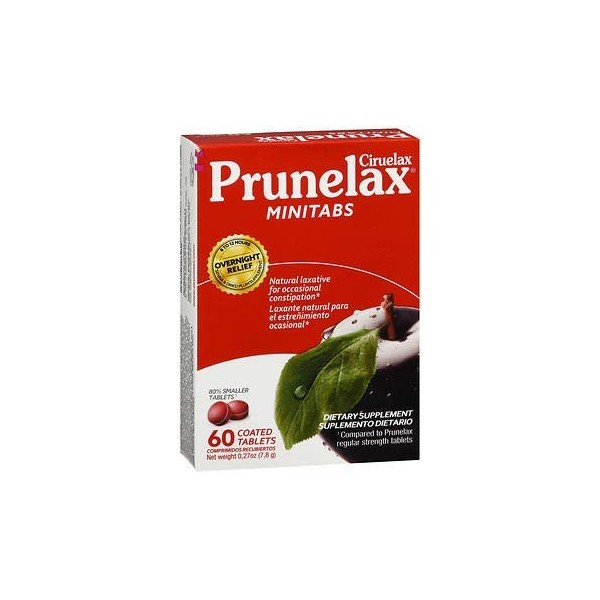 Anthraquinones per tablet equivalent to sennosides 15 mg. Contains dried plum extract with herbs which help you maintain bowel regularity.* Takes effect within 8 to 12 hours. Overnight relief. Natural laxative for occasional constipation.* 80% smaller tablets.** *These statements have not been evaluated by the Food and Drug Administration. This product is not intended to diagnose, treat, cure or prevent any disease. **Compared to Prunelax regular strength tablets.