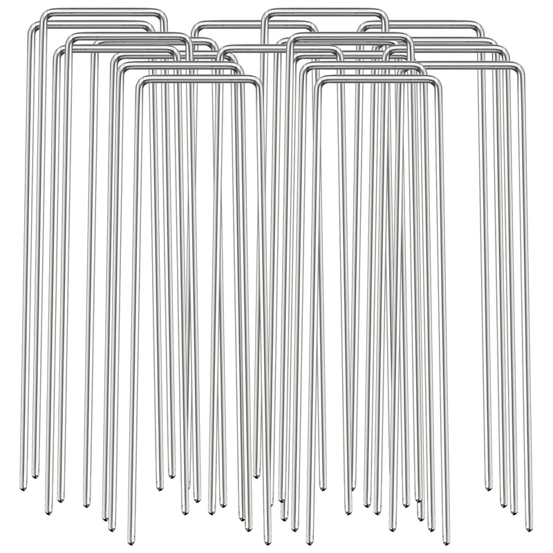 - MULTI-PURPOSE: These versatile outdoor tools can be utilized for various purposes including securing landscape fabric, garden hoses, Christmas light stakes, yards, gardens, and lawns; as well as fencing in dogs or deterring squirrels and rabbits. They also aid in fixing edging, plant roots, weed barrier landscape fabric or plastic sheets, fences, and hoses to maintain a clean and tidy garden space.