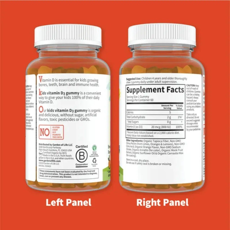 Garden Of Life Gomitas orgánicas con Vitamina D3 para niños, 60 gomitas Sabor Naranja