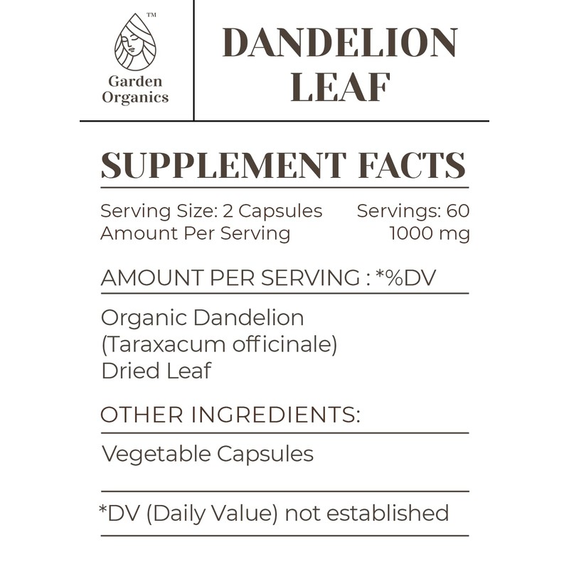 Garden Organics Dandelion Leaf 120 Capsules | High-Potency Capsules, Herbal Dietary Supplements | Made with Vegetable Capsules and Dandelion (Taraxacum officinale) Dried Leaf (120 Capsules)