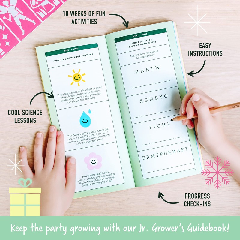 - BONUS: Our ten week activity book keeps the fun growing long after the painting and planting is over. Filled with growing progress checks, super-fun kids games, and science learning activities