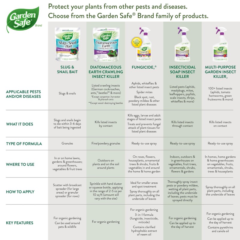 The experts behind Garden Safe? brand know home gardening is as much about how you grow as what you grow. Since 2002, Garden Safe? brand has delivered garden products including natural-based and botanically derived formulas to growers who prefer to control plant pests and diseases without traditional chemicals. Gardeners trust our solutions to keep garden pest control simple C and let nature do the rest. Let goodness grow. Garden Safe? slug and snail bait granules contain a unique combination of iron phosphate, which is a plant nutrient that occurs in soils, with slug and snail bait additives. After eating the bait, slugs and snails cease feeding, become less mobile and begin to die within 3 to 6 days. This product will control slugs and snails in or on home lawns, gardens, greenhouses, outdoor ornamentals, vegetable gardens, fruits, berries, citrus and crop plants. The bait can be scattered on the lawn or on the soil around any vegetable plants, flowers or fruit trees or bushes where snail or slug control is needed. This product can be used around pets and wildlife. Apply the bait during the evening, as slugs and snails travel and feed mostly by night or early morning. Treat all likely areas of infestation, especially around the perimeter of garden plots.