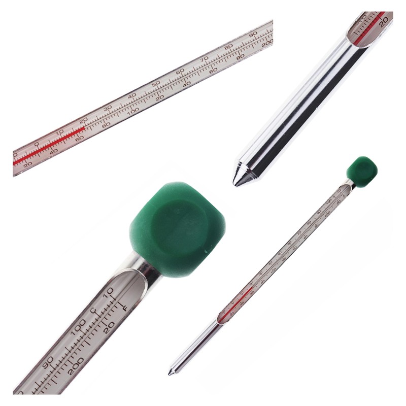 210 mm garden soil thermometer, glass thermometer and easy to locate "green top". These soil thermometers are frequently required in the agriculture and horticulture industries to check temperatures of soil and compost. The soil thermometer has a green knob at the top to assist with location. Can also be used as a compost thermometer.