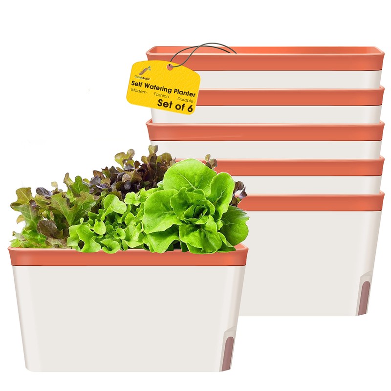 GardenBasix Self Watering Planter Pots Window Box for Indoor Plants Home Garden Modern Decorative Flower Pot for All House Herbs Succulents Set of 6 (6, Clay(Rectangle))