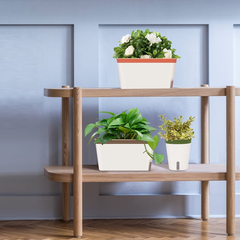 GardenBasix Self Watering Planter Pots Window Box for Indoor Plants Home Garden Modern Decorative Flower Pot for All House Herbs Succulents Set of 6 (6, Tricolor(Rectangle))