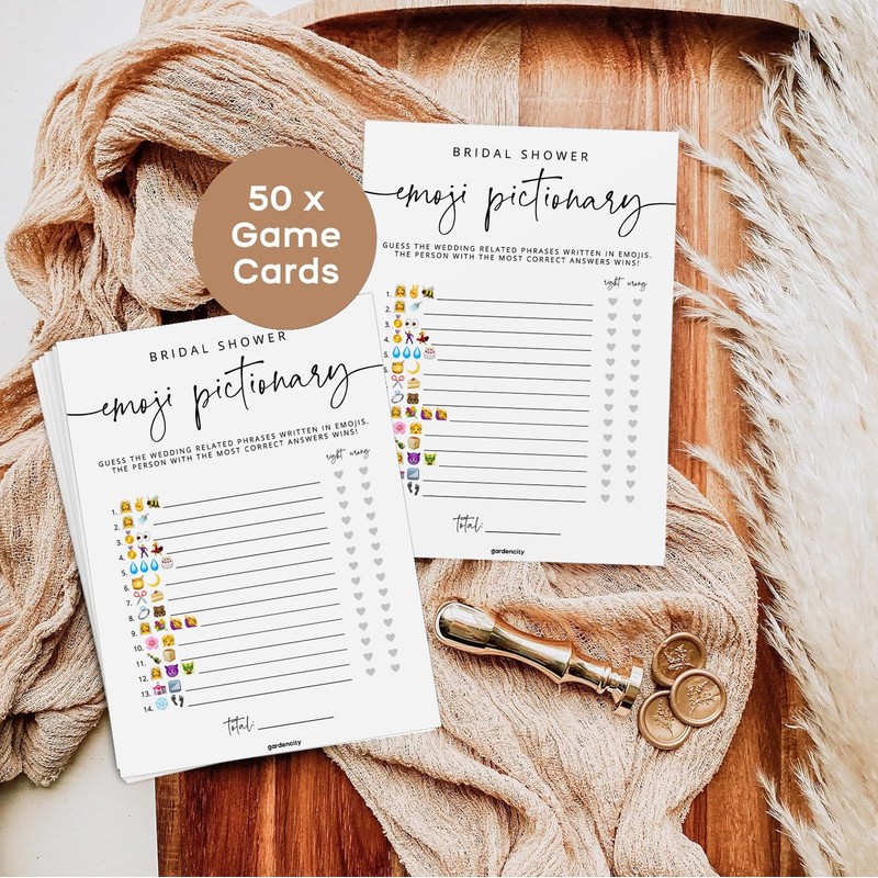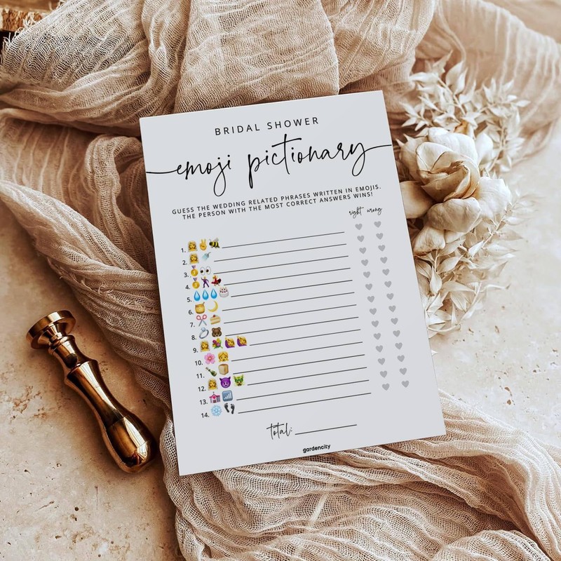 GardenCity Bridal Shower Emoji Game, Bridal Shower Games for 50 Guests, Fun Pictionary Emoji Guessing Game, Minimalist