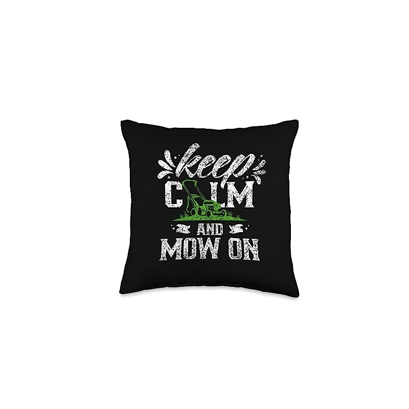 Gardener Lawn Care Lawn Mowing Gardening Keep Calm Cut Mower Lawn Grass Mowing Throw Pillow, 16x16, Multicolor