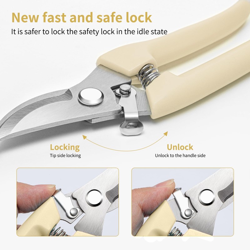 - 【Professional-Grade Durability】Reinforced handles pass cycle endurance tests. Spring-assisted mechanism enables single-handed operation – ideal for pruning roses, herbs, or shaping shrubs with surgical precision