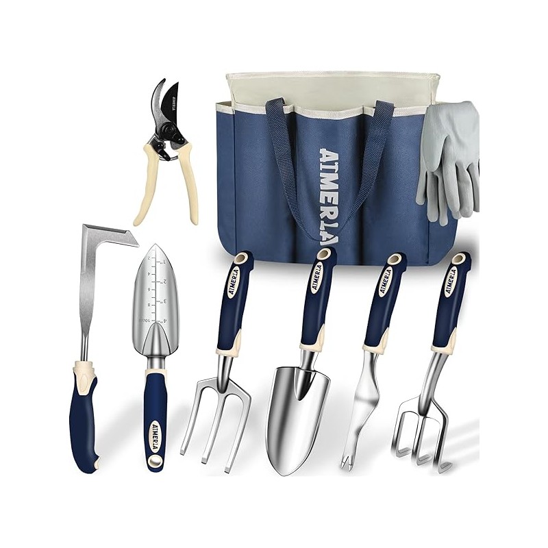 Gardening Tools Set of 9 Heavy Duty Garden Tools with Non-Slip Rubber Grip with Large Garden Bag for Tools Durable Hand Tools for Gardening, Weeding,Gardening Gifts for Women,Men