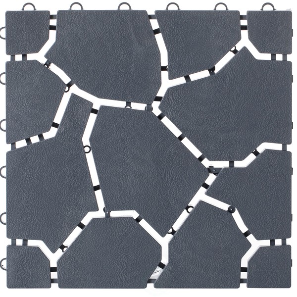 Gray Garden Path Track Interlocking Stone Look Design Pathway Tile Floor Paver, Pack of 4