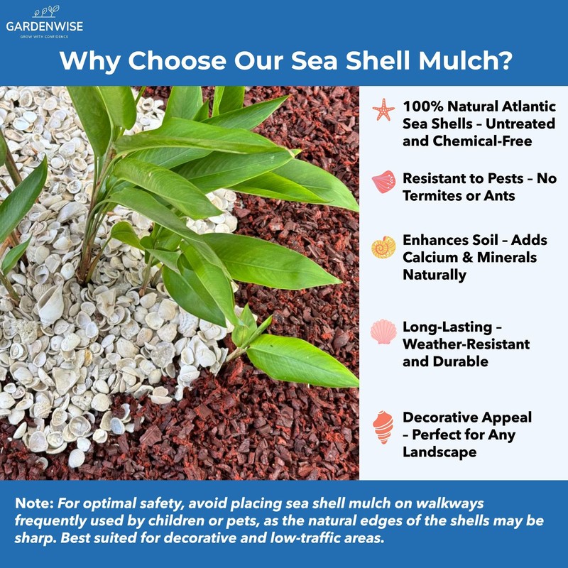 - Pest-Resistant and Safe: Sea shell mulch does not attract ants, termites, or other pests, providing a long-lasting, clean solution for landscaping without the use of chemicals.