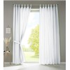 - Set of 2 opaque and translucent curtains made of micro satin with loops and ruffle tape. The curtains come complete with a tieback