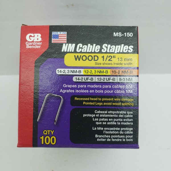Gardner Bender NM Cable Staples for Wood 1/2" 100 PCS. #MS-150