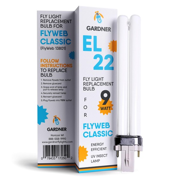 Gardner EL-22 FlyWeb Classic Fly Light Replacement Bulb, Fly Light for Indoors, Fly Web Light Lamp Replacement, UV Insect Light Traps, 9 Watt - Non-Zapper Insect Solution