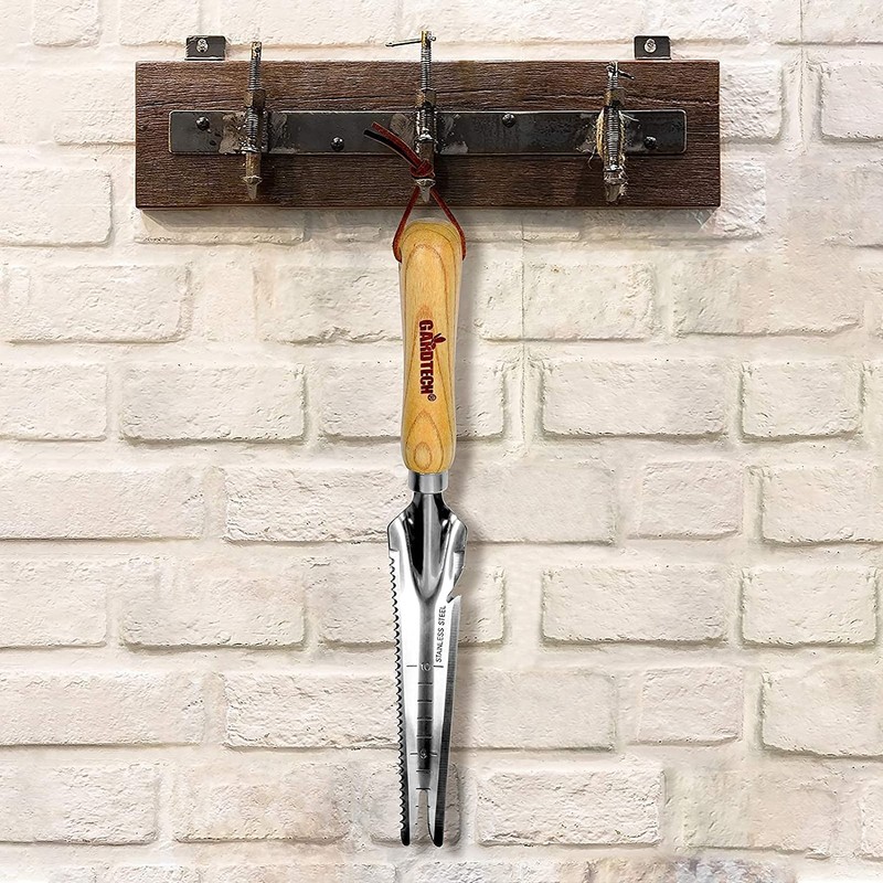 - High-quality material: the planting tools with long sawtooth shovel are made of stainless steel, which are not deformed, robust, durable and rust resistant. Non-slip, comfortable wooden handles allow for easy movement of the wrist and reduced hand fatigue while working.