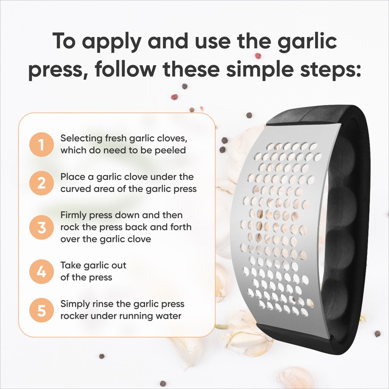- EASY CRUSHING POWER: The garlic press rocker is engineered to provide maximum leverage with minimal effort.