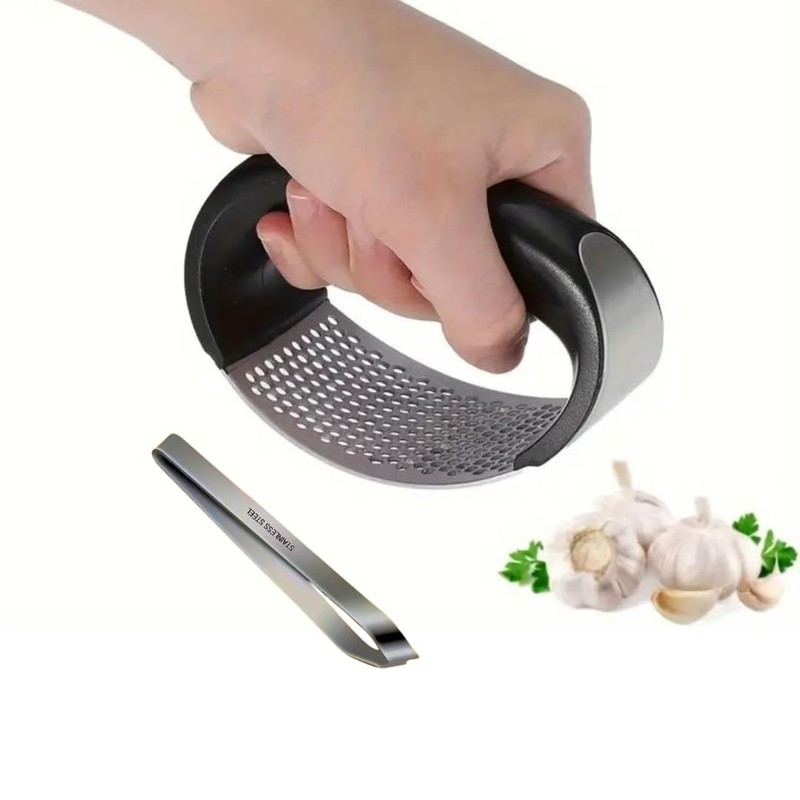 - **MULTIFUNCTIONAL GARLIC PRESS** This garlic press rocker is an all-in-one tool that helps you crush, mince, and chop garlic with ease, making your kitchen tasks quicker and more efficient. Say goodbye to garlic prep hassle!
